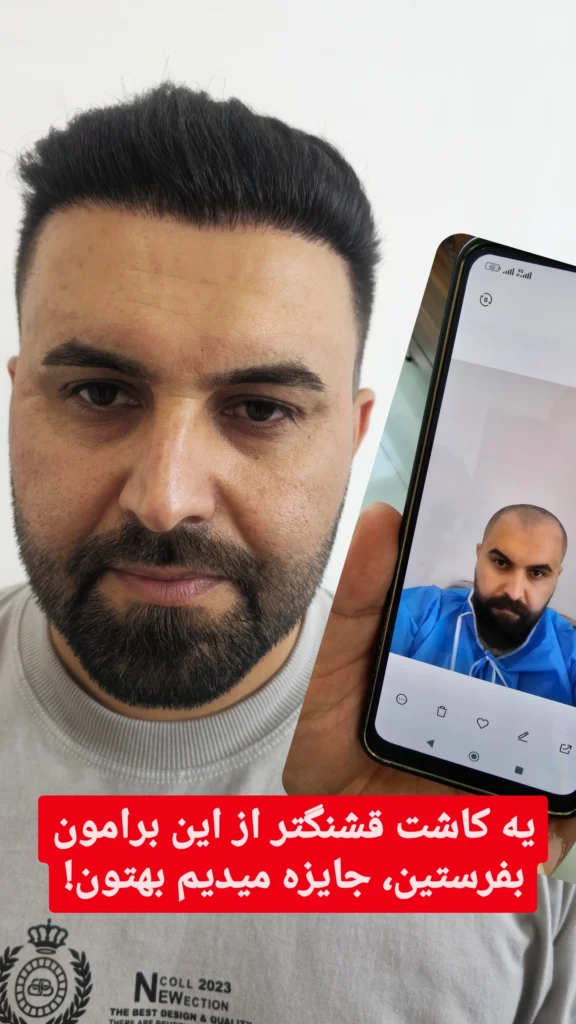 اینم آقای سیروان زحله از اهل سردشت و ساکن انگلستان که جهت کاشت مو از خارج برگشته بودن و خیلیم راضی هستن: