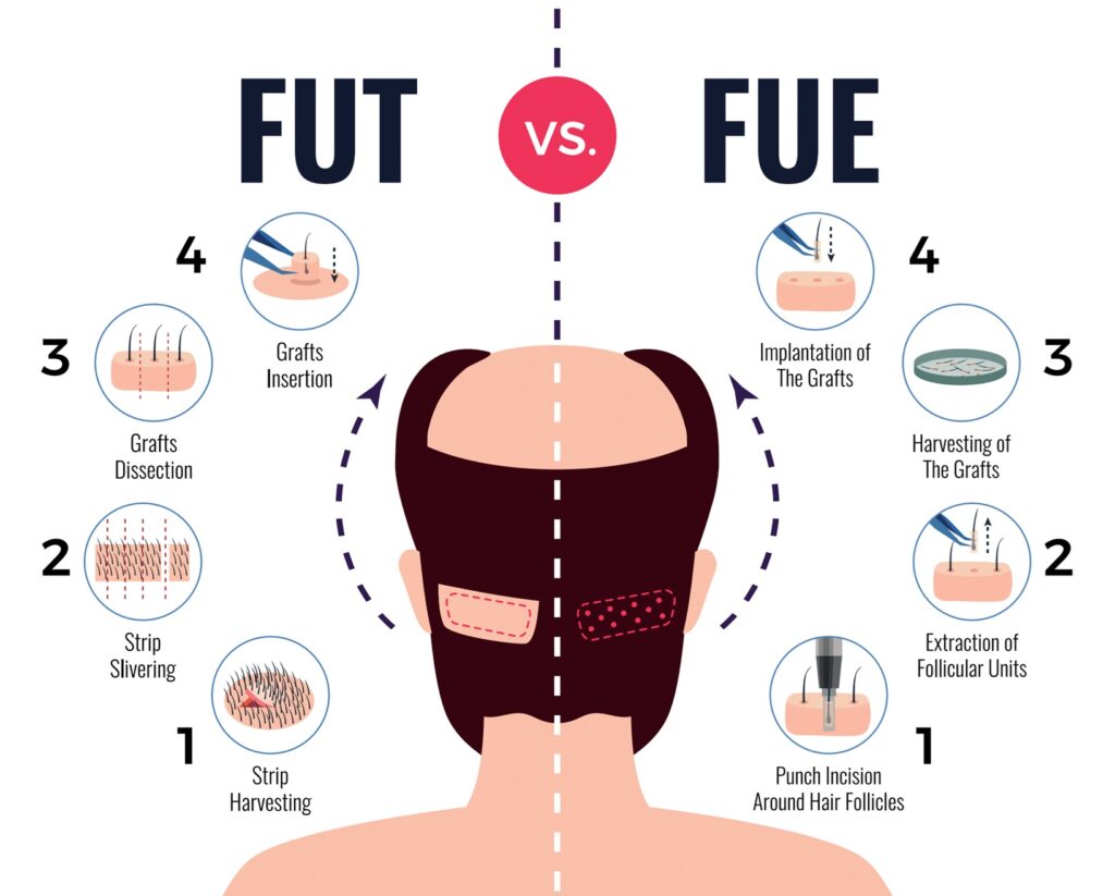 در زیر مراحل هر دو روش کاشت مو رو به صورت مقایسه ای مشاهده میکنید.